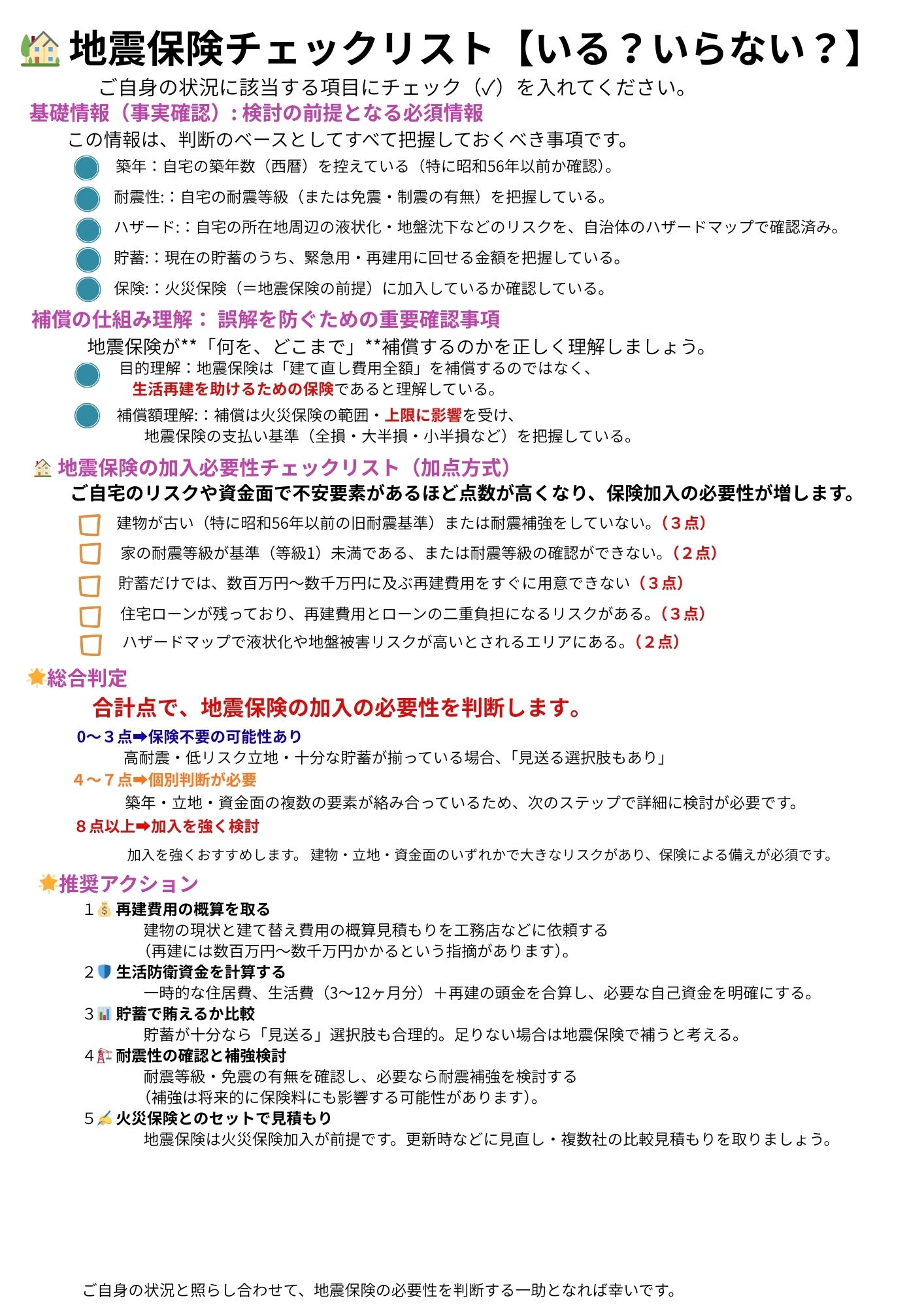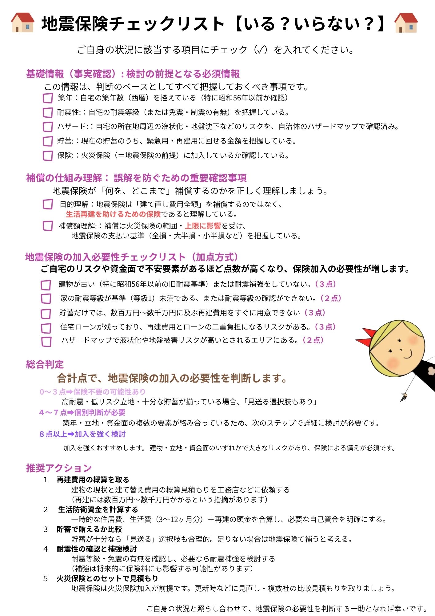 **無料PDF『地震保険チェックリスト』**を用意しました。