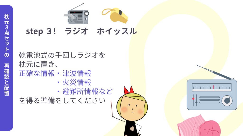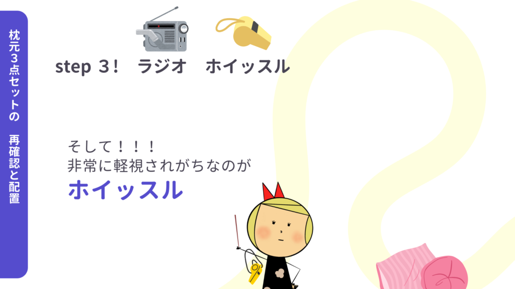 枕元の3点セットの配置確認から始めてみてください。
