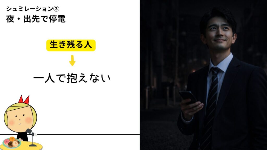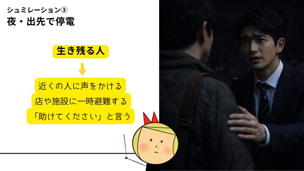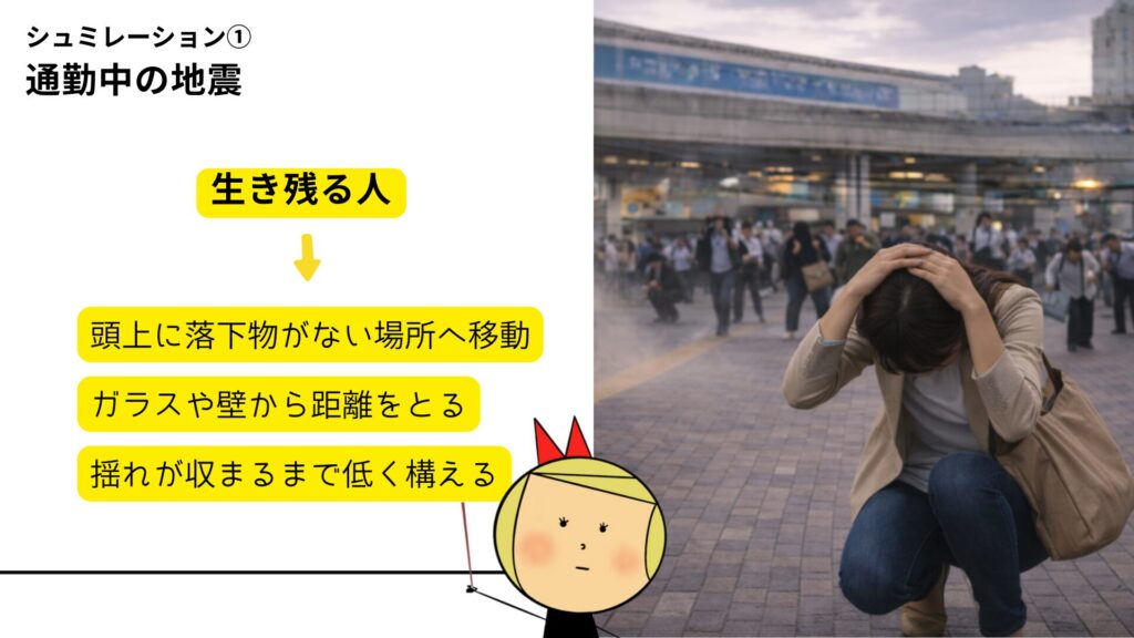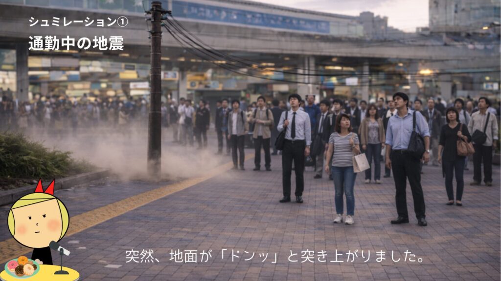 外で被災した瞬間、人は必ず迷います。